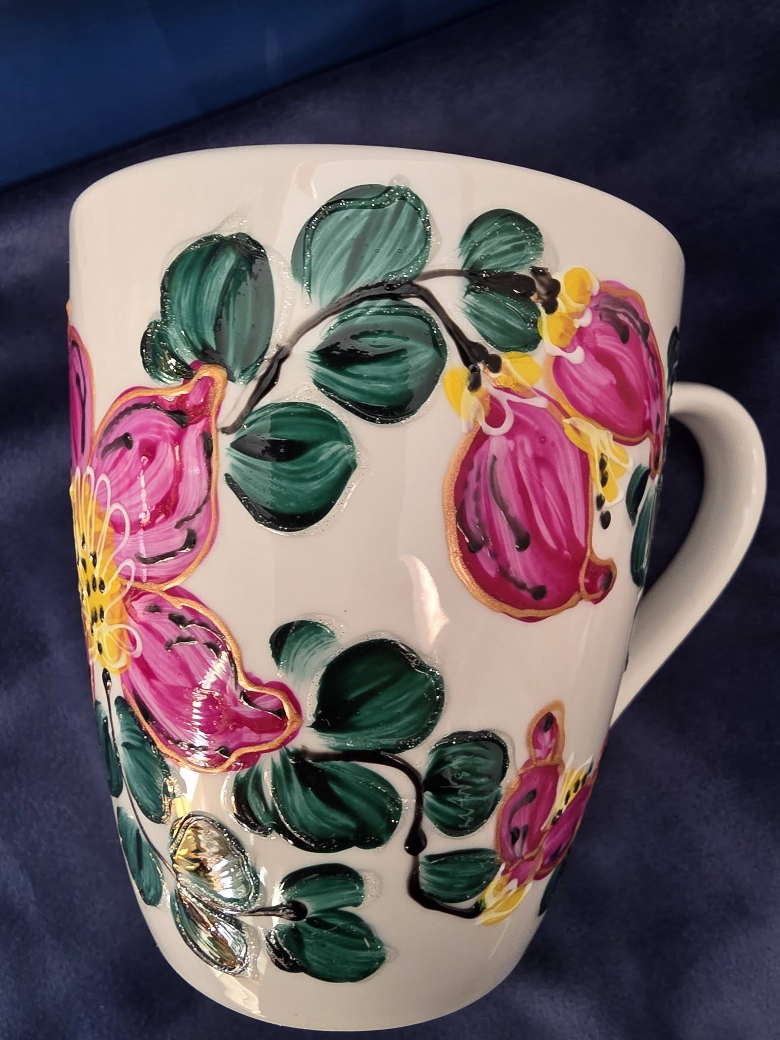 Oferuję wyjątkowy kubek z porcelany, ręcznie malowany przeze mnie. Każdy kubek jest unikatem, wykonanym z dbałością o detale.
